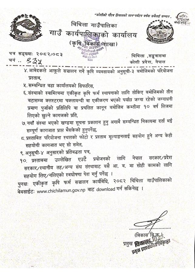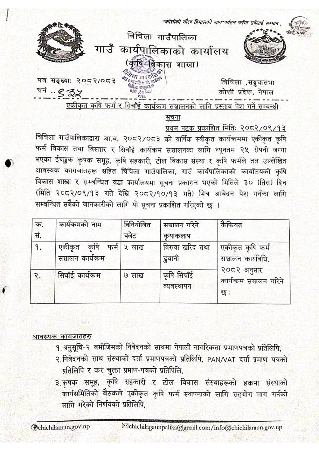 आ. व. २०८२/०८३ का लागी कृषि विकास शाखाको प्रस्ताव पेश गर्ने सम्बन्धि सुचनाहरु