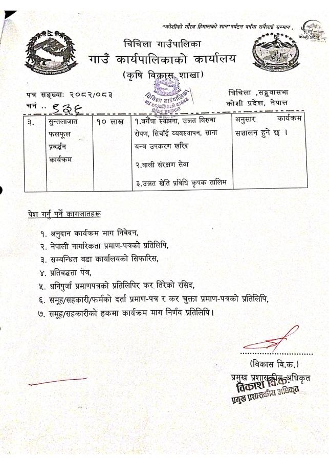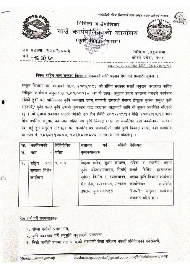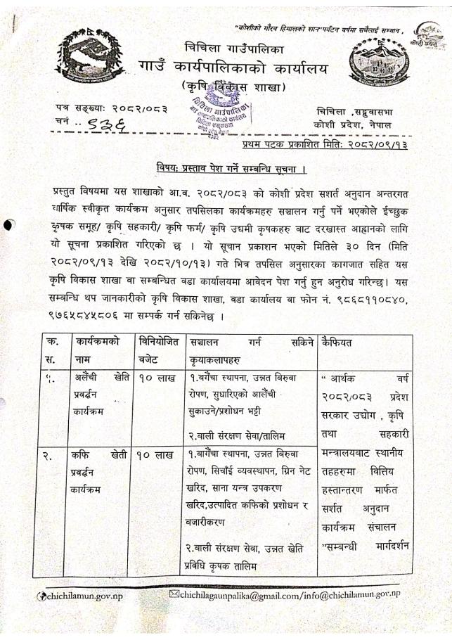 आ. व. २०८२/०८३ का लागी कृषि विकास शाखाको प्रस्ताव पेश गर्ने सम्बन्धि सुचनाहरु