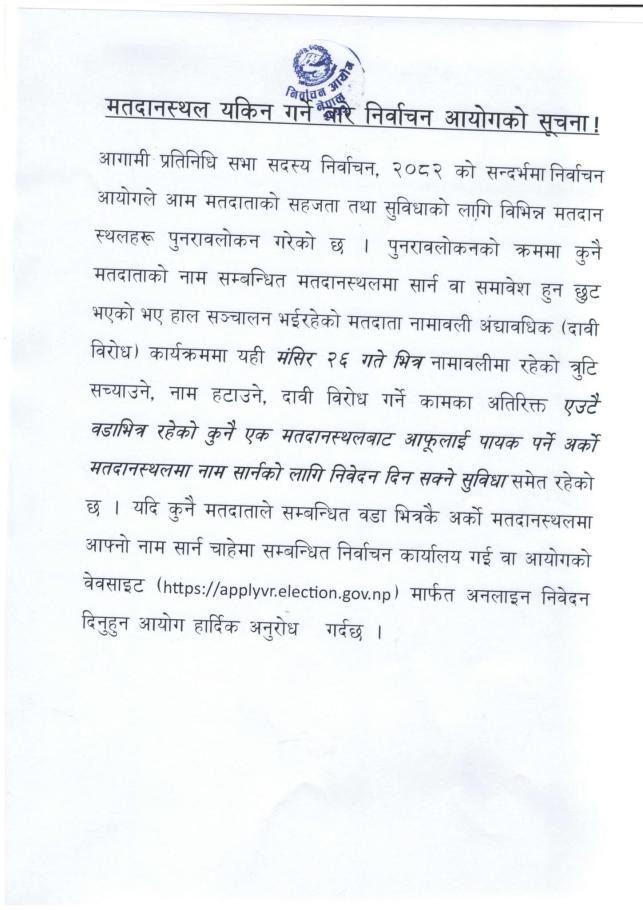 मतदानस्थल यकिन गर्ने बारे निर्वाचन आयोगको सुचना