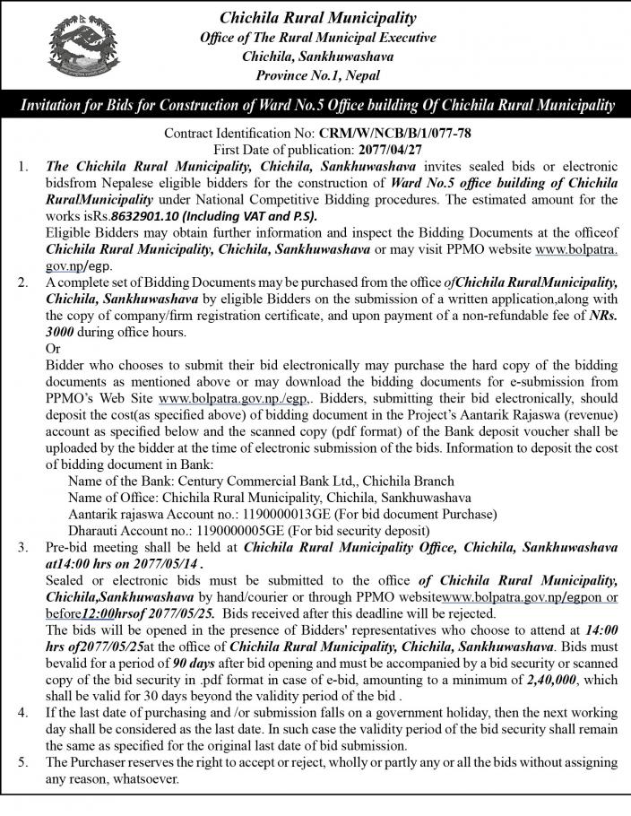 Notice for construction of ward no 5 office building
